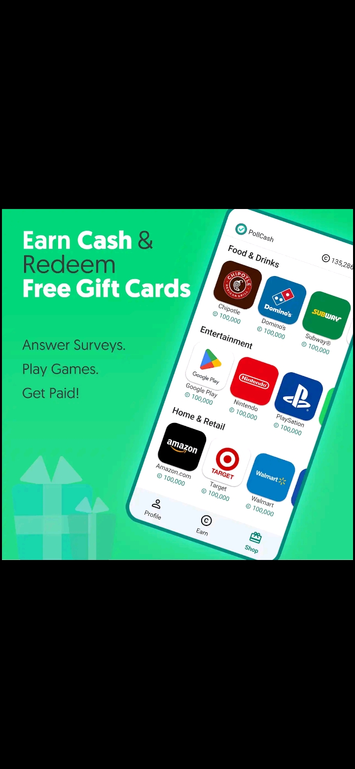 Poll Cash يوفّر لك الفرصة أن تكسب نقاطًا مقابل الإجابة على استبيانات وعروض بسيطة، ويمكنك استبدال هذه النقاط ببطاقات هدايا فورية من أشهر المتاجر.