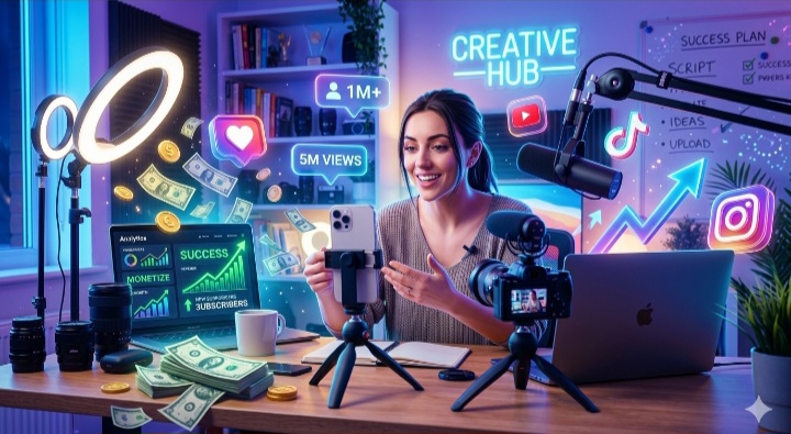 في عصر الإنترنت والسوشيال ميديا أصبح إنشاء المحتوى أحد أهم الطرق لتحقيق الدخل عبر الإنترنت. فقد تحولت منصات الفيديو مثل TikTok وYouTube إلى فرص حقيقية للشباب لعرض أفكارهم ومواهبهم والوصول إلى ملايين المشاهدين حول العالم.