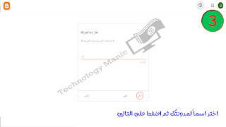 3- ستظهر لك نافذة تريد منك كتابة اسم مدونتك ، اكتب الاسم الذي تريد ثم اضغط على "التالي".
