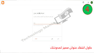 4- اكتب عنوان لمدونتك ، ويجب أن يكون مميز وغير مستخدم من قبل.